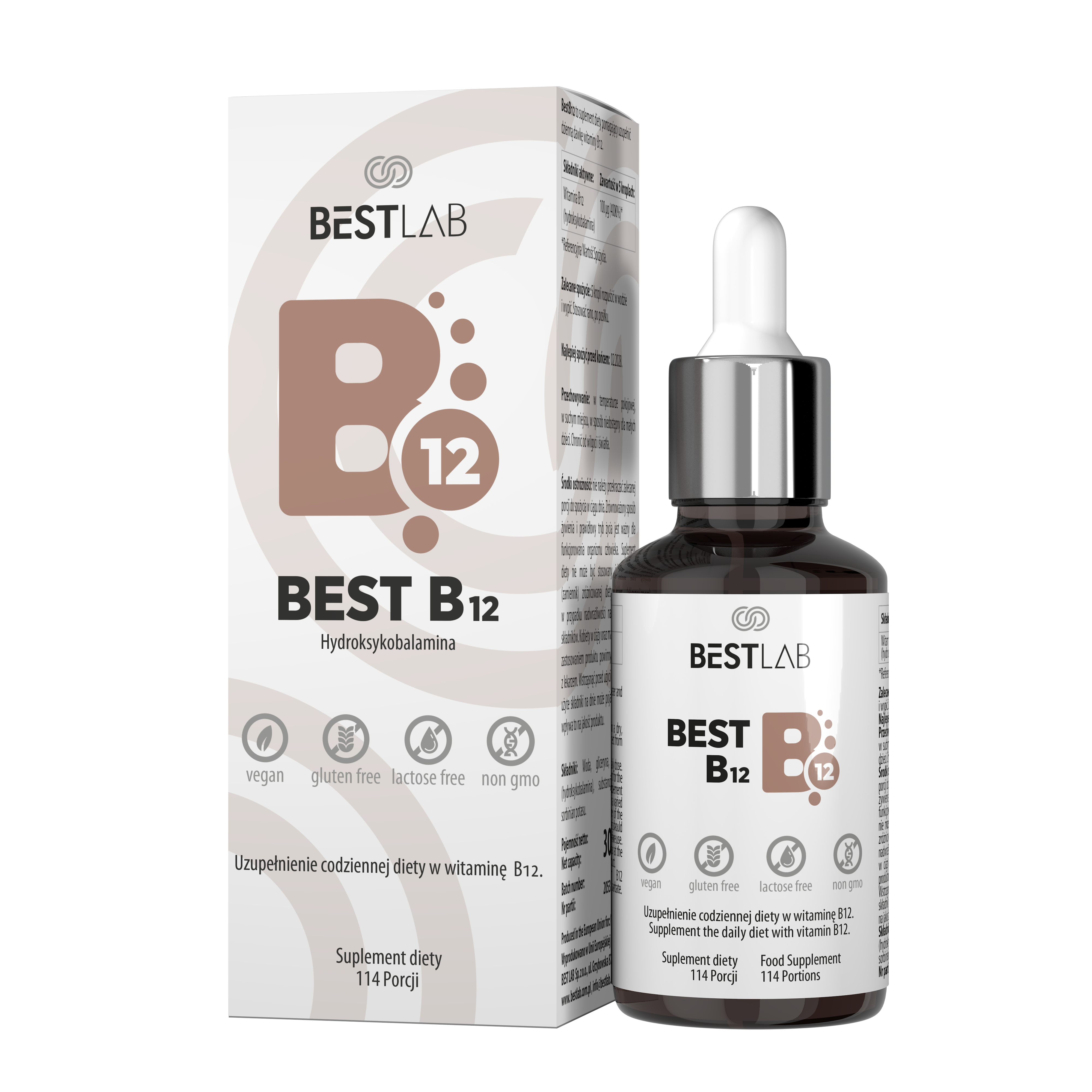 BestB12 to suplement diety zawierający witaminę B12 w formie hydroksykobalaminy, przeznaczony do uzupełniania codziennej diety w ten kluczowy składnik odżywczy.